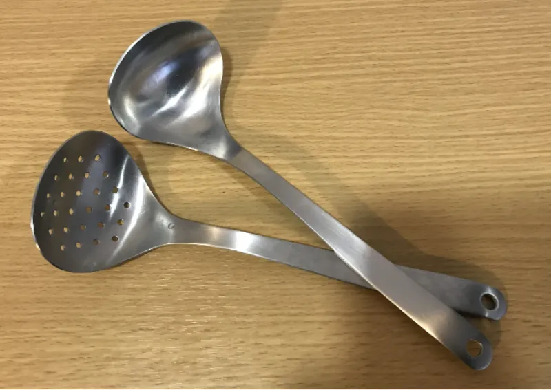 麺や鍋の具を引っかけ、汁だけ落としてよそいやすい調理道具です。使用頻度はそれほど多くなく、比較的ニッチな調理道具といえるでしょう。