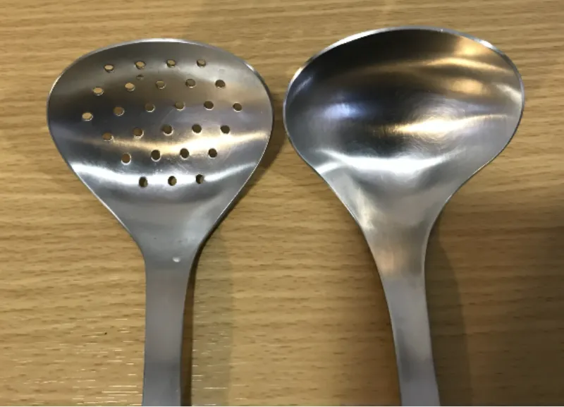 柳宗理のレードルやスキンマーは非常に剛性が高く頑丈ですが、そのために自分好みの角度へ曲げて調整することはできません。一般的なお玉のように力を加えて少し曲げるといった調整は、まず不可能です。