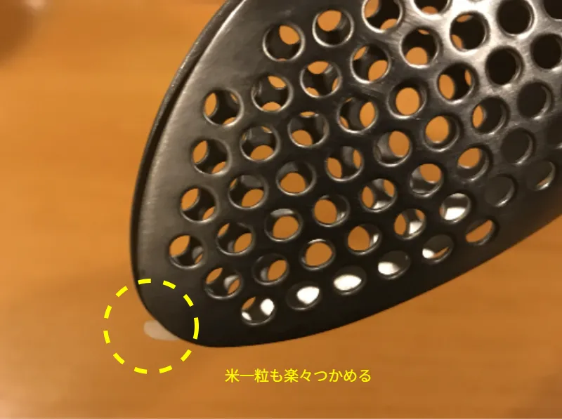 尖った側を下にすれば、米1粒も簡単につかめるほどです!