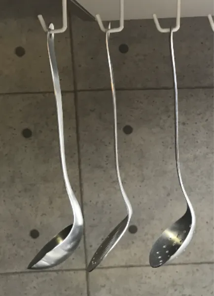 柳宗理のターナーは、フックにかけて保管する人にもおすすめです。心地よい曲線は横から見ても美しく、キッチンをおしゃれにしてくれます。